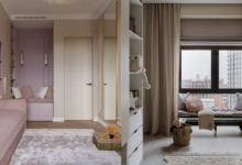 Чем меньше площадь, тем важнее задействовать все поверхности. Настенные полки, крючки, подвесные органайзеры помогают разместить больше вещей, не перегружая основные системы хранения. На кухне можно повесить рейлинг для мелкой посуды, в прихожей крючки для сумок и ключей, в спальне полку над кроватью. Также не забудьте о неочевидных вертикальных поверхностях: хранение можно организовать не только на стенах, но и на дверях, в торцах шкафов.