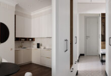 В нейтральном интерьере текстиль и декор часто выступают в роли акцентов. Ковер тоже может стать самой яркой деталью в комнате: например, как в этой квартире для девушки. Кухня-гостиная выполнена в мягком бежевом монохроме, который дизайнер оживила с помощью более ярких деталей. Самой крупной из них стал мягкий ковер с абстрактным узором. Один из его цветов повторяет плед на диване, благодаря чему нет ощущения инородности.