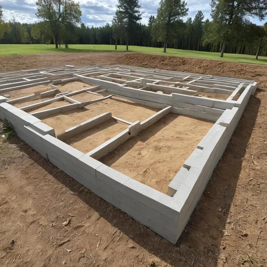 Чтобы минимизировать сезонное пучение грунта и обеспечить долговечность, на дне выемки создается многослойная подушка. Сначала засыпается песчаная подушка, которую послойно проливают водой и уплотняют виброплитой до исчезновения следа от обуви. Поверх песка распределяется щебень средней фракции, что значительно повышает несущую способность опоры под фундаментные блоки. Такая подготовка гарантирует, что железобетонные изделия не просядут под нагрузкой и сохранят стабильное положение. В некоторых случаях под блоки для фундамента заливается тощая бетонная подошва, обеспечивающая идеальную плоскость для монтажа. На этом же этапе закладываются инженерные коммуникации и слив, чтобы исключить последующее разрушение монолита. Правильно сформированное основание позволяет выполнять монтаж и установка элементов ЖБИ максимально оперативно.