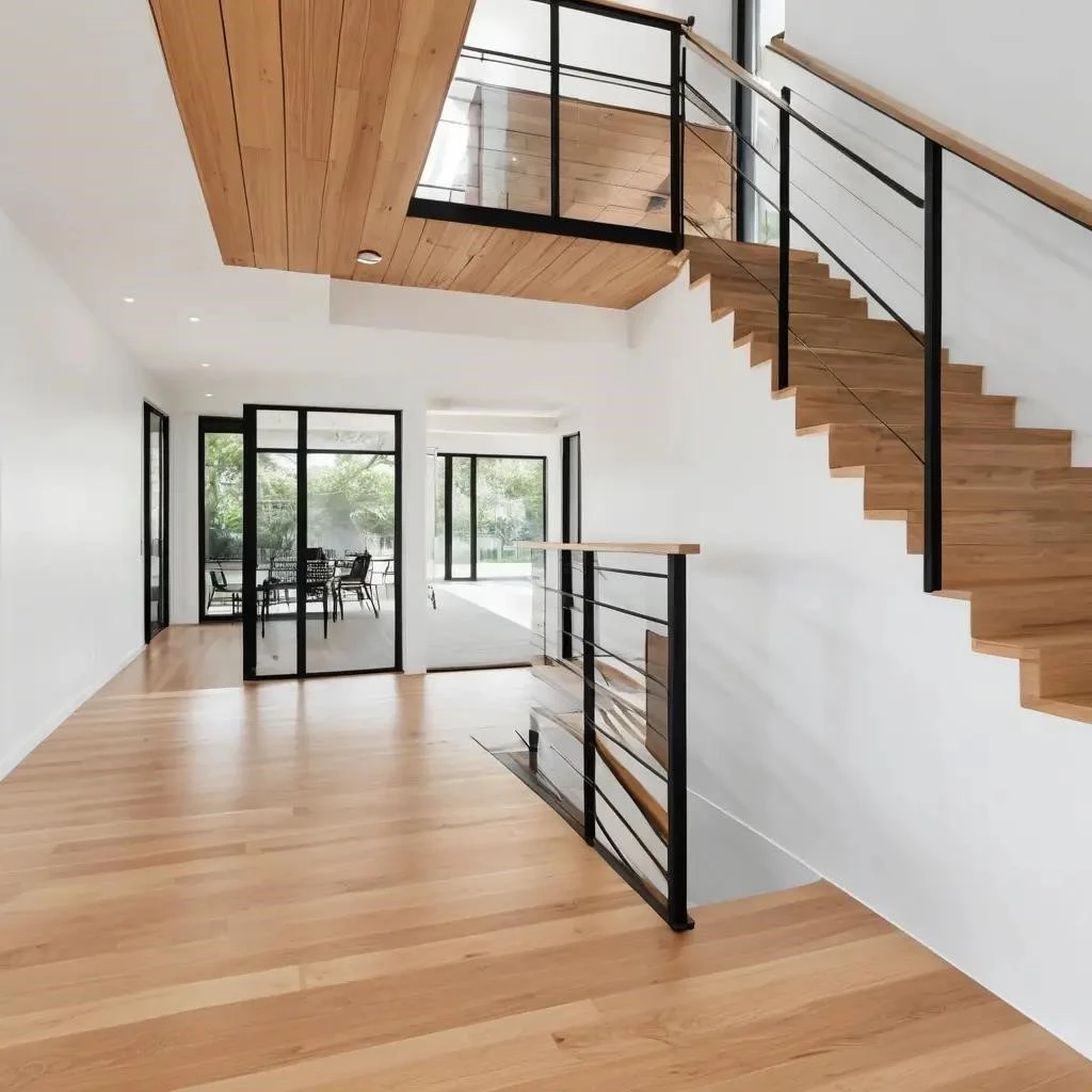 Основными параметрами комфорта выступают высота шага и глубина, которую имеет проступь. Оптимальный угол наклона для жилых помещений варьируется от 30 до 45 градусов, обеспечивая безопасный подъем. Если планируется площадка, ее размеры должны соответствовать такому параметру, как ширина марша, чтобы не создавать узких мест. В проекте учитывается и будущая облицовка: толщина, которую имеет мебельный щит или массив дерева, влияет на итоговую высоту первой и последней ступени. Для ступеней часто выбирается износостойкая лиственница, благородный дуб или бюджетная сосна. Также на схеме размечаются места под ограждение, включая перила, балясины и удобный поручень. Нельзя забывать про подступенок, который может быть открытым для легкости конструкции или закрытым для классического вида. Все точки, где предусмотрено крепление к стенам и перекрытиям через анкеры, фиксируются в документации.