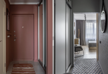 Эта квартира по проекту Лены Харловой находится в старом доме 1958 года, из гостиной есть выход на маленький открытый балкончик, который после ремонта оставили как зону отдыха в теплое время года. На полу плитка и яркий коврик, есть столик и пара стульев. Мебель мобильная, чтобы было легко занести внутрь, когда придет сезон осадков. А на перекладине балкона висят кашпо, где можно выращивать цветы или домашнюю зелень.