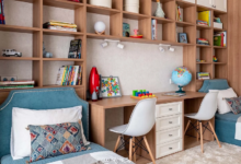 Сложный цвет, который редко используют в интерьерах, и от того он вызывает много эмоций и помогает создать по-настоящему запоминающееся пространство. Цвет ежевики использовала в своем проекте дизайнер Елена Ефимовых. Его применили в спальне в такой оттенок покрашена стена в изголовье кровати, в этом же цвете выполнены прикроватные тумбочки и текстиль на кровати. Фиолетовый цвет «поддержали» в кухне-гостиной обивкой дивана и стульев. Залог удачного применения сложного цвета нейтральные цвета в качестве базы.
