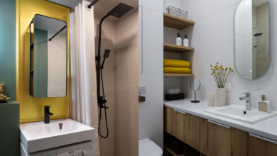 Задача оформления небольшой студии была амбициозной. В рамках ограниченного бюджета и сжатых сроков предстояло создать привлекательное пространство «вне времени». Здесь должны были гармонично сосуществовать элементы из разных эпох, а доступные материалы и мебель стать обстановкой премиального уровня. И это удалось. Европейская керамика возвращает нас к кухонным интерьерам XX в. Округлые формы и бархатная обивка создают атмосферу 1960-х. Винтажные постеры, оформленные в овальные рамки, и виниловый проигрыватель великолепно смотрятся на фоне лаконичной современной отделки. Цветовое решение построено на драматичном дуэте дамасской розы и благородного шалфея, с дополнением винных и изумрудных акцентов. В результате получилась интересная, богатая палитра.